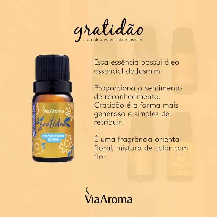 A Essência Gratidão Via Aroma possui óleo essencial de Jasmim. A presença do óleo essencial proporciona o sentimento de reconhecimento. Gratidão é a forma mais generosa e simples de retribuir. Sua fragrância é floral ambarada, gerando uma agradável mistura de calor com flor.